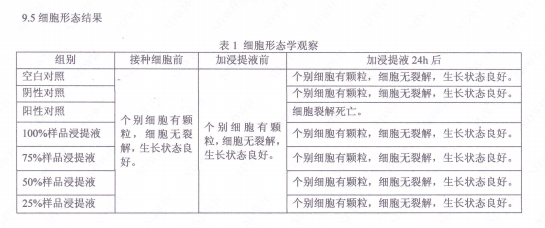 试验样品浸提液与生长旺盛的L929细胞培养(37℃ ,5%COz)24h后,观察细胞形态,细胞裂解情况,采用MTT法测定供试品的潜在细胞毒性。结果显示100%样品浸提液的细胞活力为93.5%,对照组结果显示本次试验结果有效。